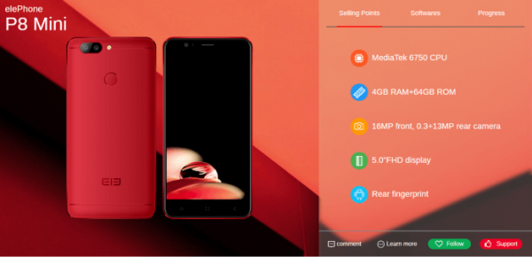 Spoločnosť Elephone v polovici mája predstavila smartfón P8 Mini.