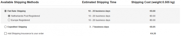 Pri výbere poštovného typu Netherlands Post Registred nebudete platiť dodatočné poplatky pri doručení
