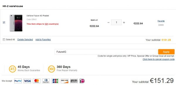Smartfón sa predáva v sume 160.19€ v rámci výpredajov, bežná cena sa pohybovala na úrovni okolo 170€. Vďaka nášmu kupónu s názvom: Future4G cena smartfónu klesne na hodnotu: 151.29€.