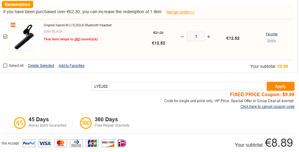 Tento model sluchátka od Xiaomi má hmotnosť len 6.4 gramu a je vhodný pre uskutočňovanie hovoru až po dobu 3 hodín. Jeho aktuálna cena sa pohybuje na úrovni: 9.78€, vďaka kupónu s názvom: LYEJ02 jeho cena klesne na skvelých 8.89€.