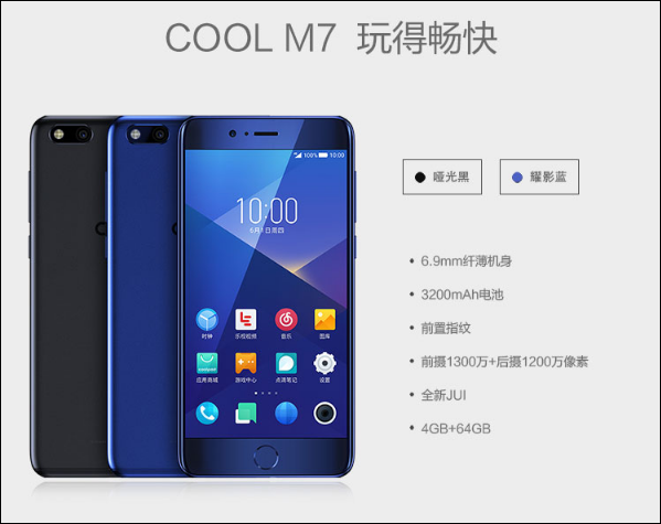 Coolpad Cool M7 prichádza s 5.5 palcovým displejom s rozlíšením Full HD. Smartfón obsahuje procesor Snapdragon 625 taktovaný na frekvenciu 2 GHz. Nový model obsahuje 4GB RAM, 64GB interné úložisko. Hlavný fotoaparát smartfón obsahuje 12 megapixelový, zatiaľ čo predný fotoaparát 13 megapixelový. Nesmie chýbať slot na dve sim karty, na nabíjanie slúži USB port typu C. Smartfón obsahuje batériu s kapacitou 3200mAh. Operačným systémom smartfónu je Android 7.0, s nadstavbou Cool UI. Nový model je kovového prevedenia, na prednej strane sa nachádza okrúhle tlačítko so snímačom otlačkov prstov.