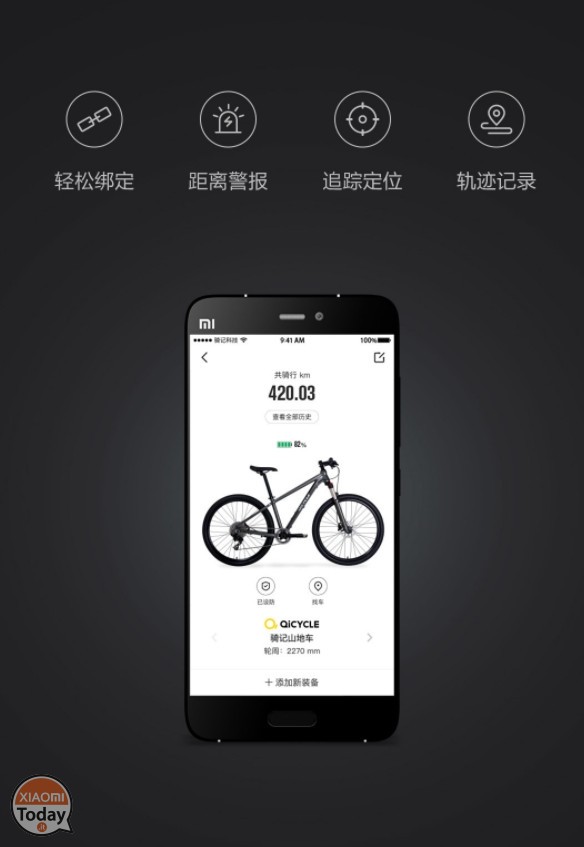 Ako mnoho ďalších dopravných prostriedkov aj tento vyrába známa spoločnosť QiCycle. Nový horský bicykel váži iba 13.5 kg a obsahuje 27.5 palcové kolesá. Spoločnosť sa zameriava prekonať konkurenciu vďaka ľahkému hliníkovému prevedeniu, hydraulickým brzdovým systémom. Bicykel má aj mnoho šikovných funkcií napríklad integrovaný GPS modul, kedy je možné neustále monitorovať lokalizáciu bicykla. Na obrázku nižšie môžeme vidieť spomínaný modul. Obsahuje vstavnú 2600mAh batériu, ktorý slúži aj ako powerbanka.