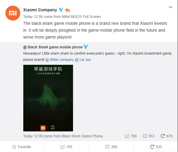 Spoločnosť Xiaomi dnes oficiálne potvrdila, že investovala peniaze do novej spoločnosti Black Shark.