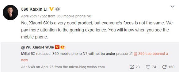 Spoločnosť plánuje predstaviť už 8. mája nový model smartfónu 360 Mobiles N7. CEO spoločnosti 360 Mobiles sa na čínskej sociálnej sieti Weibo vyjadril, že smartfón Xiaomi Mi 6X je skvelý smartfón, ale spoločnosť 360 Mobiles príde na trh so smartfónom, ktorý získa skvelé špecifikácie pre herný zážitok. Od nového modelu N7 sa očakáva, že získa procesor Snapdragon 636, RAM s kapacitou 6GB.