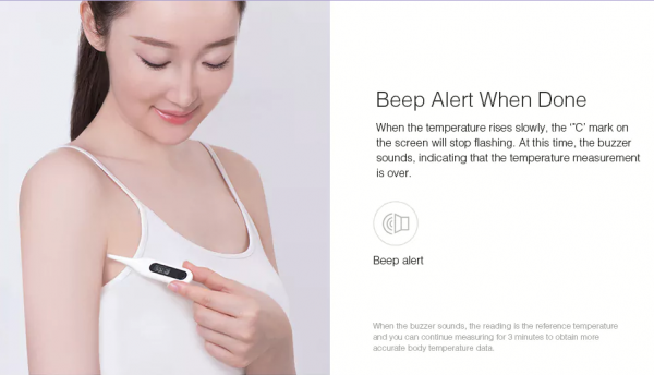Je to bežný teplomer, ktorý poznáme v domácnosti. V porovnaní s tradičnými ortuťovými teplomermi tento model neobsahuje ortuť, z toho dôvodu sa používatelia nemusia obávať skôd spôsobenými rozbitím skla. Spoločnosť Xiaomi vyhlásila, že nový produkt prešiel vážnymi testami pre biologickú kompatibilitu, vďaka čomu je produkt vyrobený z bezpečných a neškodlivých materiálov.
