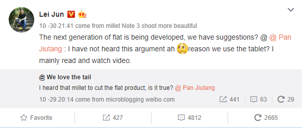 V novembri minulého roku spoločnosť Xiaomi pozastavila predaje tabletov. V tom čase CEO Xiaomi Lei Jun prostredníctvom čínskej sociaĺnej siete Weibo potvrdil, že spoločnosť pracuje na jeho nástupcovi.