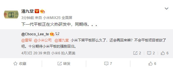 Odvtedy bohužiaľ nový tablet na trh neprišiel. Najnovšie informácie odhalili, že spoločnosť predsa len čoskoro príde na trh s novým modelom Mi Pad 4. Túto informáciu dnes zverejnil analytik Pan Jiutang: „Ďalšia generácia Xiaomi Mi Pad je vo vývoji“. Tieto informácie sa považujú za dôveryhodné, keďže aj predošlé tvrdenia od analytika boli pravdivé.