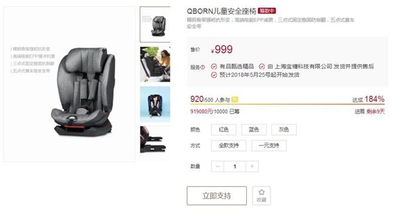 Rovnako ako mnoho nových produktov spoločnosti, aj tento nový produkt vznikol prostredníctvom čínskej crowdfundingovej kampane. Novým produktom je sedačka do auta QBORN určena pre deti od 9 mesiacov do 12 rokov. V kampani sedačka do auta získala 184% vďaka čomu vstupuje do výroby.