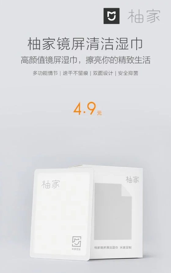 Novým produktom je Xiaomi screen utierka pre čistenie skla smartfónov na prednej, či zadnej strane. V balení nájdeme 15 ks a cena produktu sa bude pohybovať na úrovni 0.78 dolára. Nová utierka je vhodná aj pre čistenie displejov notebookov, monitorov, tabletov. Utierka má antibakteriálne vlastnosti a jej rozmery sú na úrovni 12.5cm a 10cm. Na povrchu čistených produktov utierka nezanecháva žiadne čiastočky vlákna z ktorej je vyrobená.