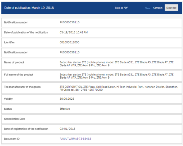 Najnovšie sa objavili informácie, ktoré naznačujú príchod modelov ZTE Axon 9 a ZTE Axon 9 Pro, keďže nové smartfóny  získali ochrannú známku EAEU.