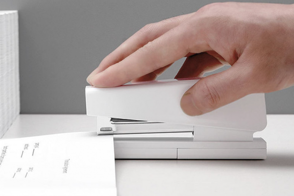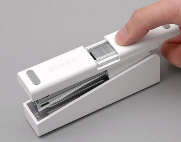 V predaji sa nachádza aj zošívačka papiera, ktorá prichádza v bielom farebnom prevedení s čistým a jednoduchým dizajnom. V balení sa taktiež nachádza 100ks sponiek.