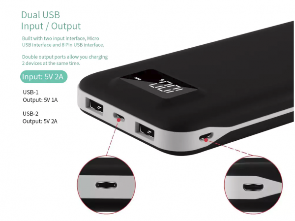 Jej cena klesla na hodnotu: 15.82€. Poštovné je v cene: 2.79€. Výhodou tohto modelu je, že obsahuje displej, na ktorom sa zobrazuje zostávajúca kapacita batérie v percentách. Dokonca je možné v rovnakom čase nabíjať až dve zariadenia súčasne.