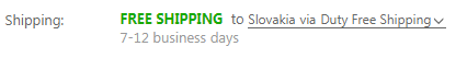 Nezabudnite vybrať poštovné Duty Free, pri ktorom neplatíte ďalšie poplatky pri doručení produktu. Toto poštovné je zadarmo.