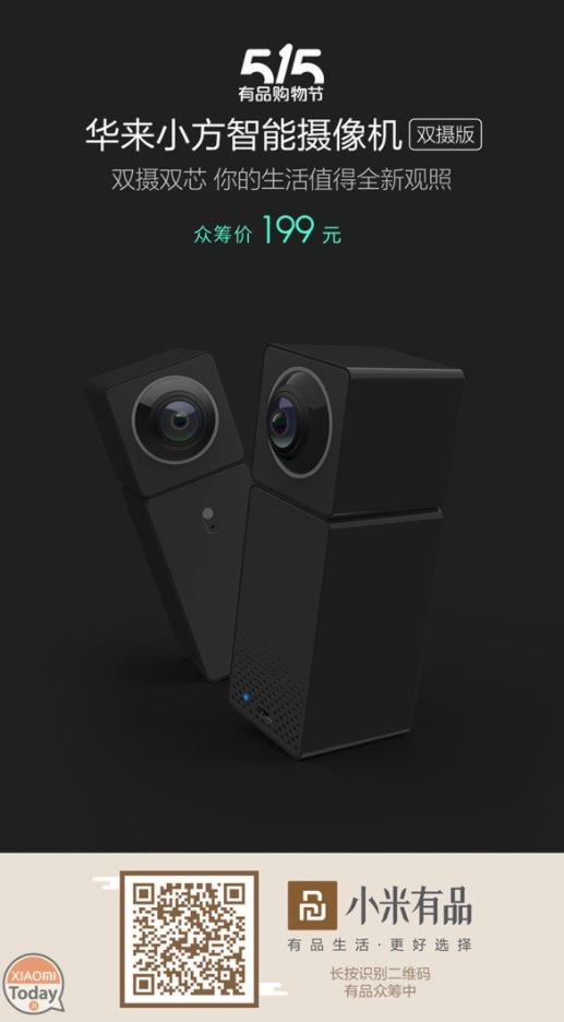 Rovnako ako u mnoho produktov spoločnosti, aj tento produkt vznikol prostredníctvom čínskej crowdfundingovej kampane. Novým produktom je domáca kamerka Xiaomi Hualai Xiaofang, ktorá dokáže snímať obraz v uhle 360°, vďaka umiestneniu snímača na prednej, aj zadnej strane kamerky. Obraz tak môže byť prenášaný zo 4 strán. Kamerka taktiež podporuje nočný režim, vďaka ktorému je obaz viditeľný do vzdialenosti 5 metrov. Samozrejmosťou je reproduktor, kamerka má aj vstup pre Micro SD karty. Rozlíšenie videa je na úovni 2048 x 1024 pixelov. Samozrejmosťou je spárovanie so smartfónom pre monitorovanie domácnosti. Dokonca prostredníctvom aplikácie je možné obraz sledovať prostredníctvom VR okuliarov.