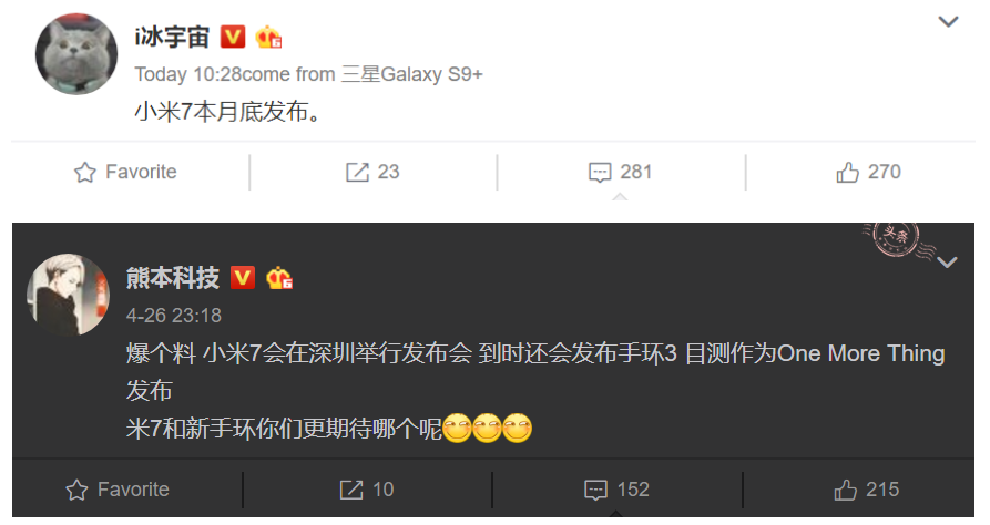 Na čínskej sociálnej sieti Weibo bolo odhalené, že spoločnosť prestaví nový smartfón Xiaomi Mi7 spolu s náramkom Xiaomi Band 3.