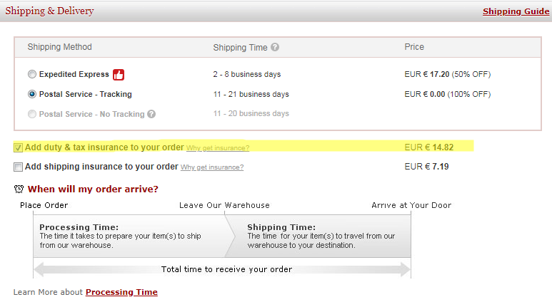 Prípadne poštovné EU Priority Line, alebo EU Express, kedy e-shop hradí poplatky DPH, balík je doručovaný kuriérom priamo k zákazníkovi bez zastavenia colnicou.