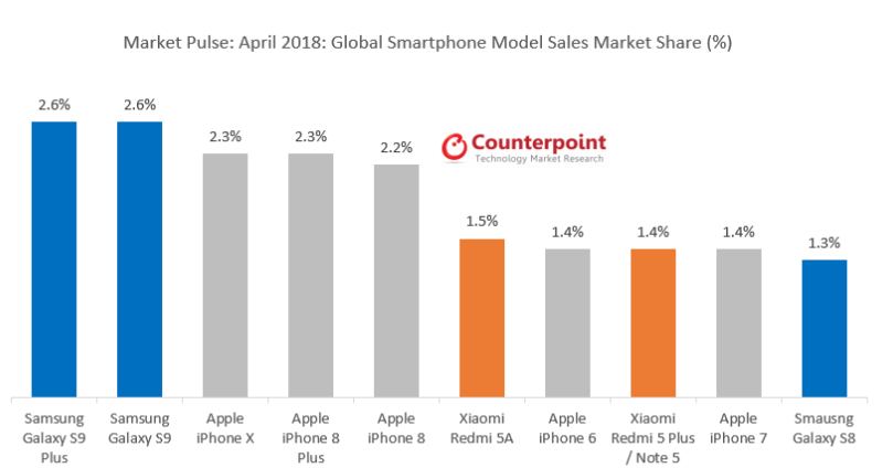 Analytická spoločnosť Counterpoint zverejnila rebríček svetovo najpredávanejších smartfónov za mesiac apríl.