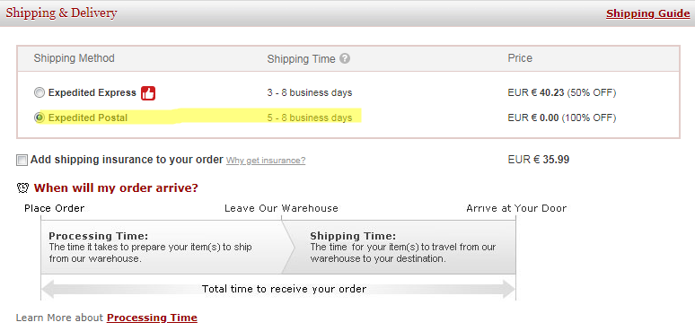 Poštovné je dokonca zadarmo, typ poštovného Expedited Postal, pri tomto poštovnom ďalšie poplatky ako CLO alebo DPH navyše neplatíte.