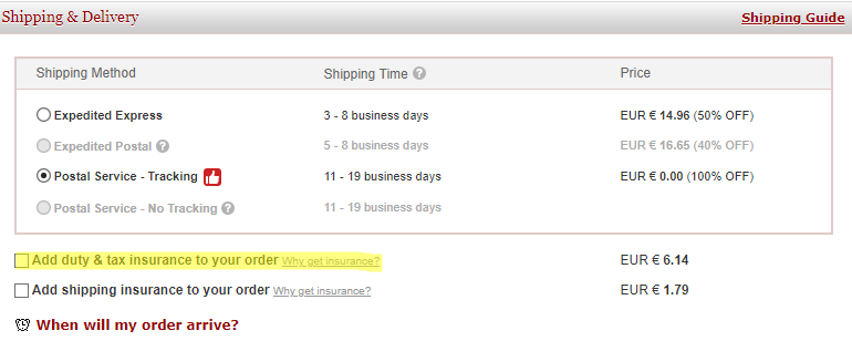 Možný je výber aj pripoistenia voči colným poplatkom v sume 6.14€. Čiže ak by balík skončil na colnici e-shop Vám tieto poplatky preplatí. Potrebné je kontaktovať e-shop, alebo nás v online podpore a my dokumenty z colnice zašleme do e-shopu na refundáciu.