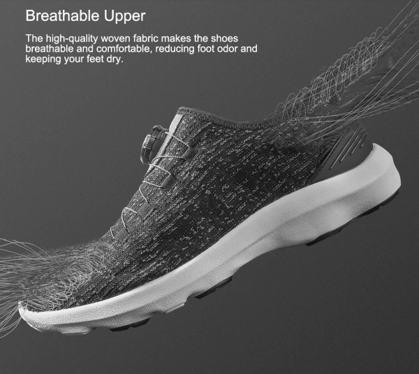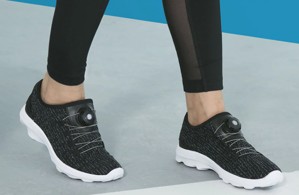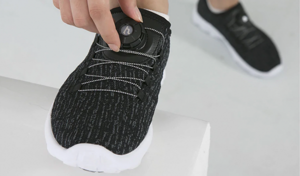 Namiesto klasického viazania šnúrok tenisky obsahujú otáčajúci mechanizmus viazania. Teniskám nechýba protišmyková spodná strana.