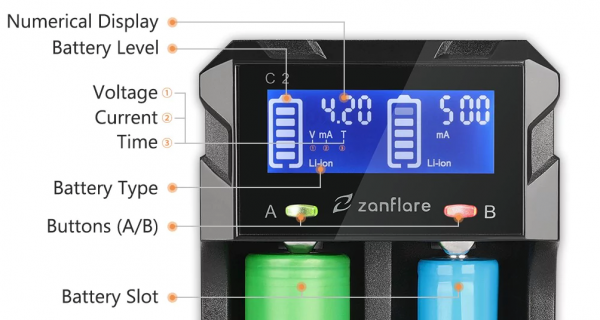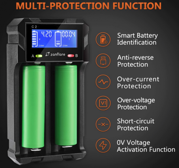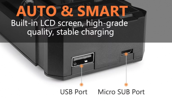 Tentokrát sa na trhu objavil nový model nabíjačky, ktorá dokáže nabíjať 2 baterky súčasne. Nabíjačka obsahuje displej na ktorom sa zobrazujú informácie o nabíjaní, nechýba množstvo bezpečnostných funkcií pri nabíjaní. Nechýba USB port pre nabíjanie smartfónu, dokonca aj priamo z bateriek.