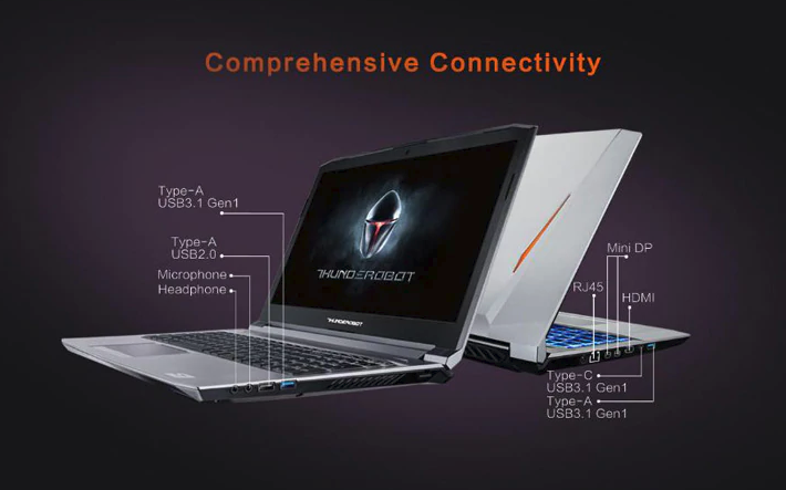 Notebook ThundeRobot ST Plus obsahuje 15.6 palcový displej s rozlíšením 1920 x 1080 pixelov. Notebook obsahuje procesor Intel Core i7-7700HQ, nechýba RAM s kapacitou 8GB, interné úložisko typu SSD, 128GB + ďalší klasický 1TB disk.