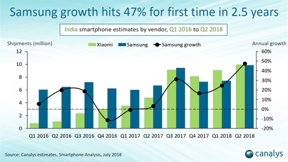 V minulom roku spoločnosť Samsung mala v rovnakom období až 25% podiel na trhu, zatiaľ čo spoločnosť Xiaomi len 18% podiel na trhu.