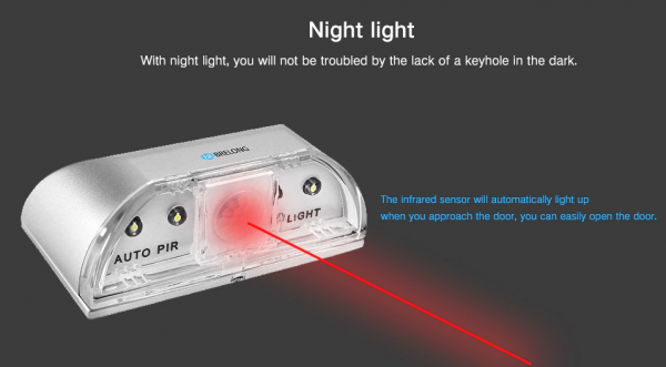 Toto svetlo má snímač pohybu a je vhodné pre nočné osvetlenie dverí. Senzor má dosah 3 metre a svieti po dobu 6 – 8 sekúnd. Svetlo je možné pripevniť priamo na dvere, skôr lepšou variantou je umiestnenie svetla nad dvere.
