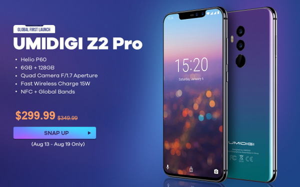 Smartfón UMIDIGI Z2 Pro získava 6.2 palcový displej s rozlíšením Full HD+, pomer displeja je na úrovni 19:9. Smartfón získava procesor Helio P60 taktovaný na frekvenciu 2GHz, nechýba RAM s kapacitou 6GB, interné úložisko s kapacitou 128GB. Hlavný fotoaparát smartfón získava duálny 16 a 8 megapixelový. Na prednej strane smartfón získava duálny 16 a 8 megapixelový. Kapacita batérie u nového modelu dosahuje úroveň 3550 mAh, ktorú je možné nabíjať prostredníctvom bezdrôtovej technológie Qi Charge. Smartfónu nechýbajú všetky jazyky, taktiež plná podpora LTE sietí s frekvenciou B20.