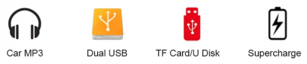 Vďaka nastaveniu frekvencie s vašim autorádiom je možné prehrávať skladby z USB kľúča, alebo Micro SD karty. Taktiež je možné v rámci bluetooth technológie adaptérik spárovať so smartfónom pre prehrávanie skladieb zo smartfónu, alebo s možnosťou uskutočňovania hovoru.