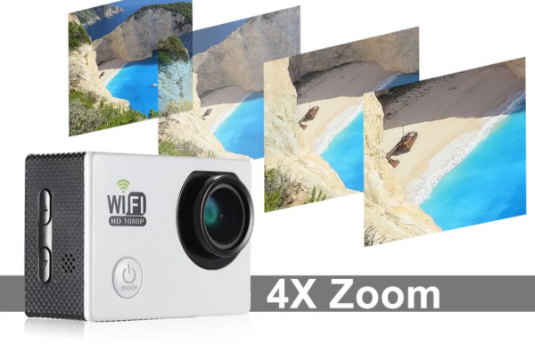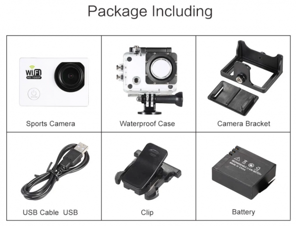 Výhodou kamerky je, že v balení taktiež nájdeme držiaky aj vodotesné púzdro. Kamerke nechýba Wifi pre spárovanie so smartfónom. Výdrž batérie je na úrovni 45 minút.