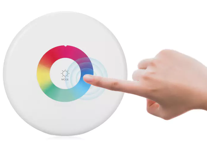 Farby je možné meniť prepínaním na hornej strane lampy. Napájaná je Micro USB portom.