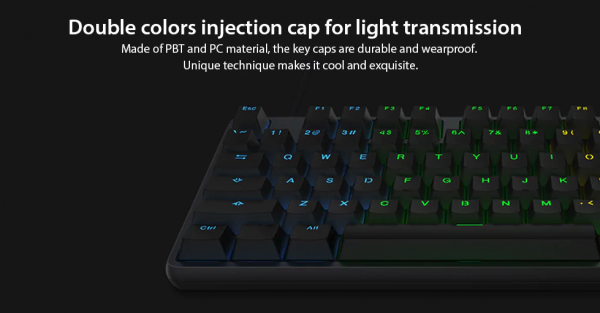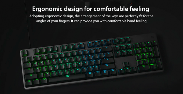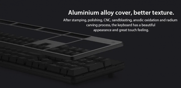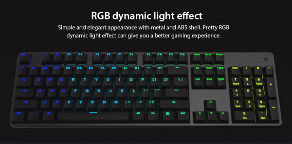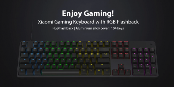 Nová Xiaomi herná klávesnica obsahuje 104 kláves. Klávesy sú navyše podsvietené. Klávesnica navyše podporuje prepínanie farieb, možnosť nastavenia intenzity jasu. Vrchná časť klávesnice je vyrobená z hlinikovej zliatiny procesom brúsenia, elogovania, pieskovania, laserového gravírovania kláves.