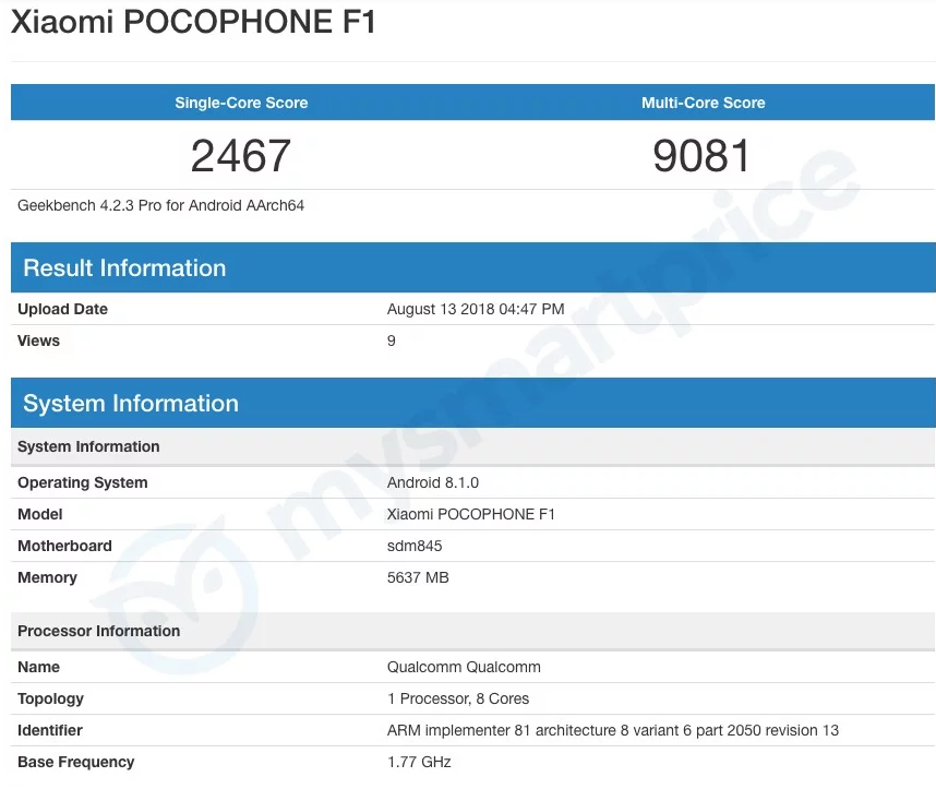 Spoločnosť plánuje predstaviť prvý smartfón novej podznačky, pod znázvom Pocophone F1, ktorý pobeží na nadstavbe MIUI. Nový smartfón získa 6GB RAM, 128GB interné úložisko. Snímač otlačkov prstov tento model získa na zadnej strane. Taktiež bude smartfón možné odomknúť na základe rozpoznávania tváre majiteľa. Smartfón ďalej získa 5.99 palcový displej, s rozlíšením Full HD+, nebude chýbať vlajkový procesor Snapdragon 845. Kapacita batérie u nového modelu bude dosahovať úroveň 4000 mAh.