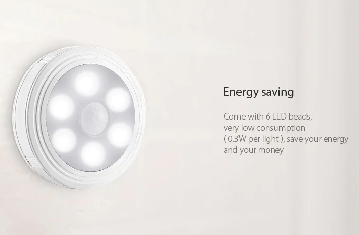 Svetlo dokáže v tme zosnímať pohyb do vzdialenosti 3 – 5 metrov. Pri žiadnom pohybe sa svetlo vypne za dobu 30. sekúnd. Svetlo je napájané 3x AA batériami s veľmi nízkou spotrebou energie.
