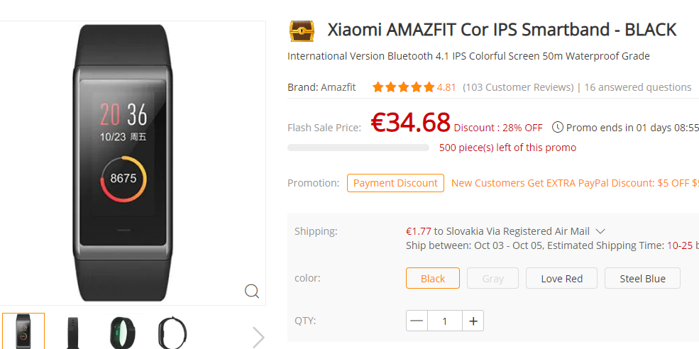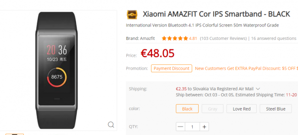 Exkluzívne vo výpredaji: Xiaomi Amazfit náramok s farebným displejom, angličtinou za 34.68€ z pôvodných 48.05€