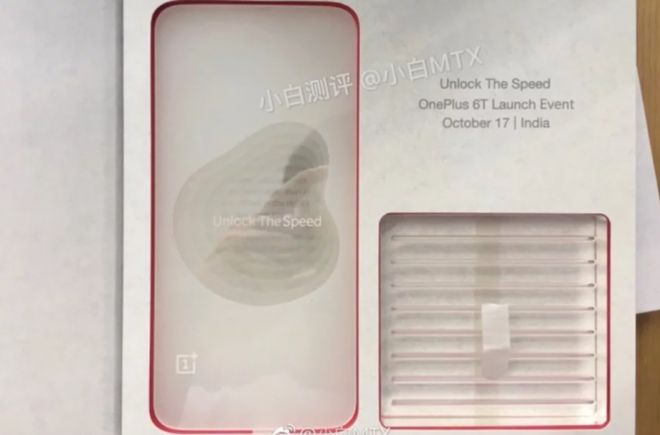 Spoločnosť rozposlala pozvánku pre predstavenie nového modelu smartfónu OnePlus 6T, ktorý bude predstavený 17. októbra v Indii. Podľa frázy „Unlock The Speed“, ktorá sa zobrazuje na podobizni smartfónu sa očakáva, že smartfón získa snímač otlačkov prstov integrovaný v displeji. Novému modelu nebude chýbať vlajkový procesor Snapdragon 845, RAM s kapacitou 6 alebo 8GB, interné úložisko s kapacitou 64GB, 128GB alebo 256GB. Smartfón pobeží na operačnej nadstavbe Oxygen OS 9.0, na Androide 9.