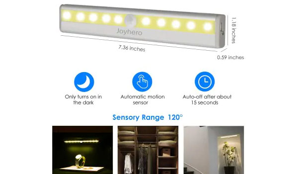 Senzor dokáže zosnímať pohyb do vzdialenosti až 5 metrov, ak senzor nezaznamená pohyb vypne sa za dobu 15 sekúnd.
