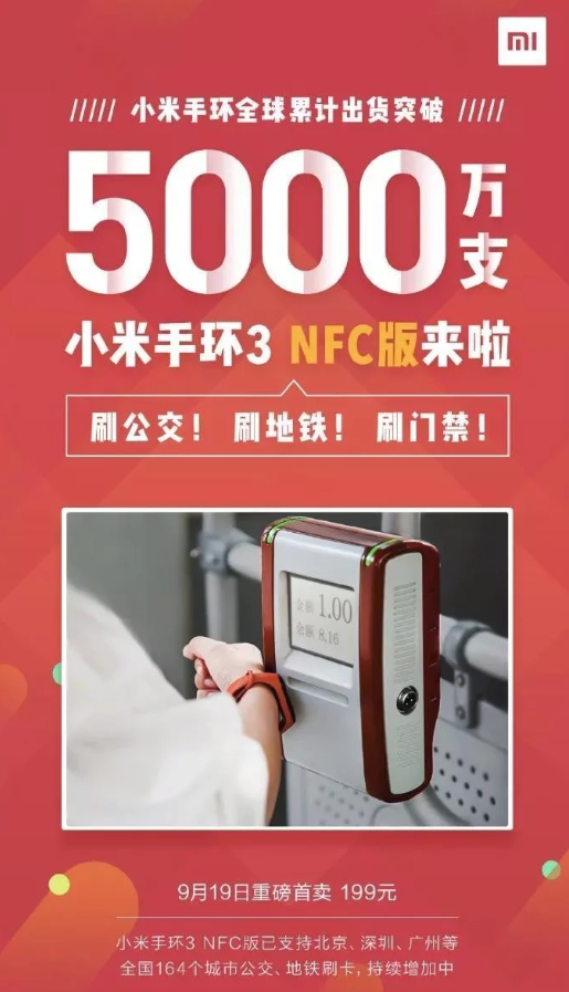 Na trhu sa stále neobjavila varianta s NFC čipom, ktorý nový náramok má obsahovať. Spoločnosť najnovšie zverejnila upútavku, kedy varianta s NFC vstúpi do predaja. Náramok na čínskom trhu bude v predaji od 19. septembra. Zatiaľ nie je známe, či táto varianta sa bude predávať aj v GLOBAL verzií – v angličtine.
