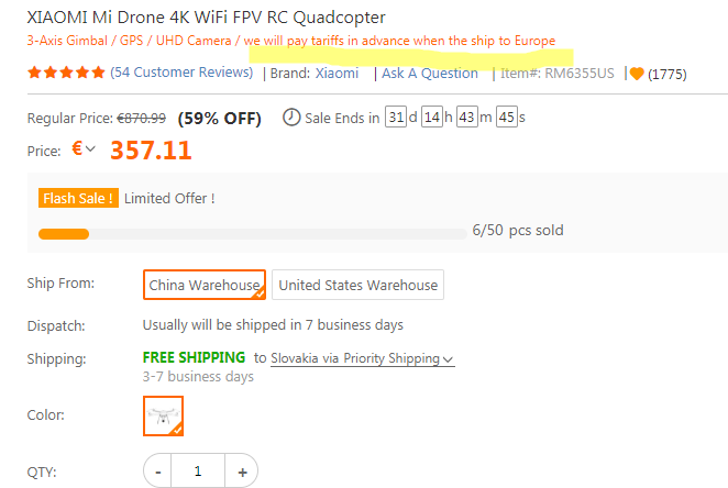 Cena dronu bola znížená na hodnotu: 357.11€.