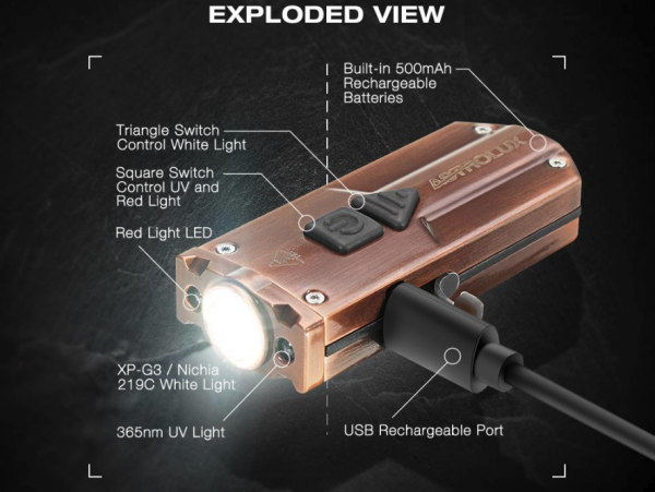Kľúčenku so svetlom je taktiež možné dobíjať prostredníctvom Micro USB káblika. Taktiež nechýba indikátor batérie, ak kapacita batérie klesne pod hodnotu 20% svetielko sa zmení zo zelenej farby na červenú.
