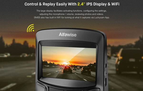 Nová kamerka Alfawise MB05 určená do auta získava 2.4 palcový displej, nahráva vo formáte Full HD, nechýba premazávanie videí, podpora Micro SD kariet do kapacity 32GB. Taktiež nechýba automatické spustenie kamerky po naštartovaní. Kamerke nechýba možnosť spárovanie so smartfónom, vďaka zabudovanému Wifi modulu. Pre spárovanie slúži aplikácia Luckycam.