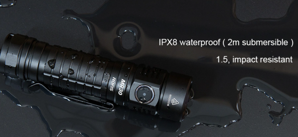 Batéria je taktiež vodotesná do hĺbky 2 metrov, vďaka integrovanej batérií je ju možné nabíjať prostredníctvom káblika. Výhodou je, že taktiež obsahuje tlačítko na zapnutie, ktoré keď svieti na červeno, značí to slabú kapacitu batérie na svietenie.