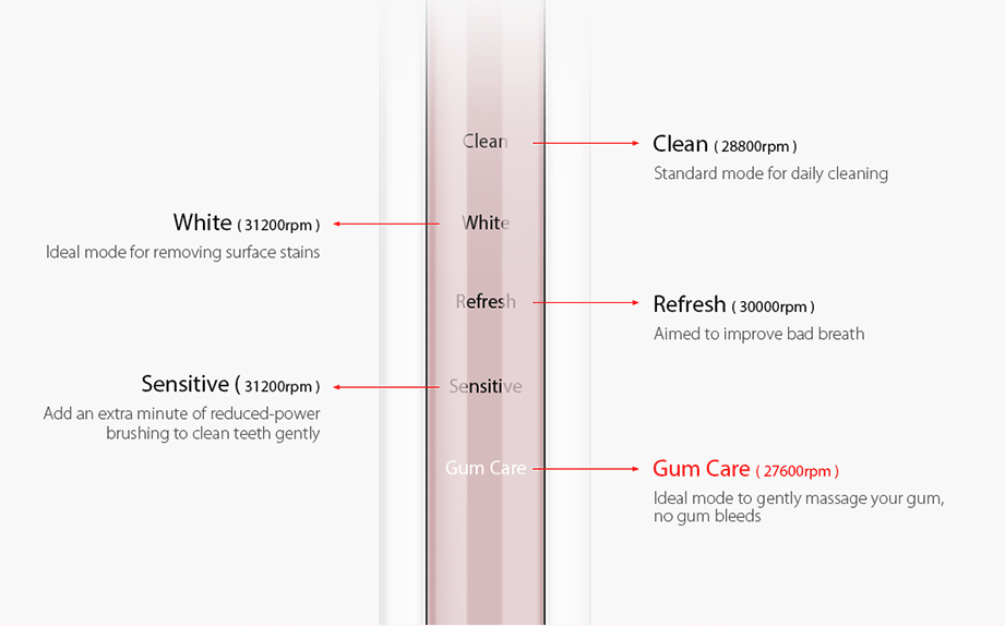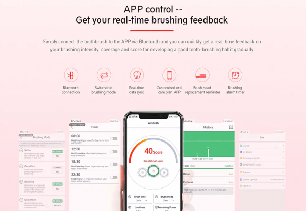 Nová zubná kefka obsahuje až 5 režimov čistenia zubov. Vďaka integrovanej batérií s kapacitou až 2000 mAh zubná kefka vydrží až 100 dní používania. Zubná kefka je taktiež vodotesná kedy jej neublíži ponorenie pod vodu. Nechýba dióda stavu batérie, taktiež podsvietené nápisy určujúce režim čistenia. Ku kefke v balení sa dodávajú 4 nadstavce. Vďaka technológii bluetooth je možné zubnú kefku spárovať aj s aplikáciou v smartfóne.