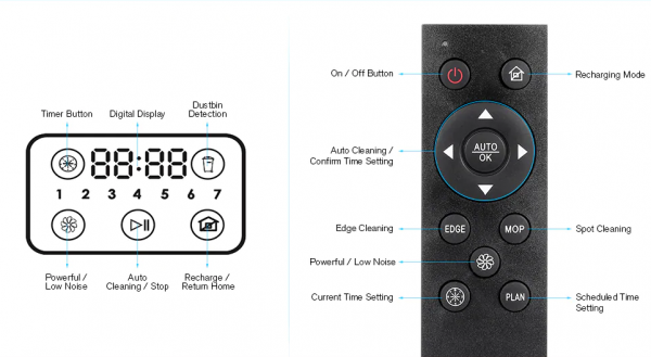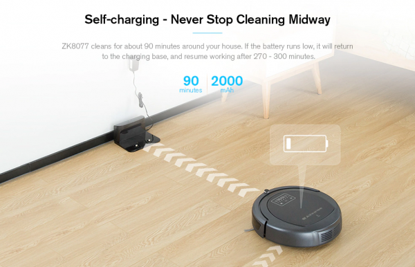 Novému modelu Alfawise ZK8077 nechýba displej, pod ktorým sú tlačidlá pomocou ktorých je možné spustiť vysávanie, taktiež nastaviť rýchlosť vysávania. Tieto hodnoty je možné ovládať aj prostredníctvom ovládača. Na ovládači je taktiež možné nastavovať plánovanie vysávania. Vďaka 2 000 mAh batérií vysávač vydrží približne 90 minút vysávania, ak je slabá výdrž batérie, alebo ak vysávač dovysával, nechýba automatický návrat na nabíjačku.