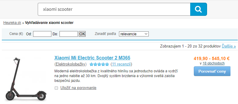 Cena kolobežky sa na Slovensku pohybuje na úrovni od 419€.
