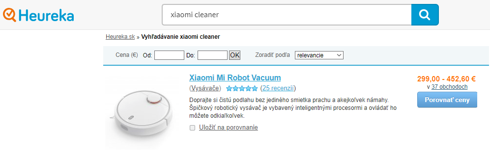 Cena Xiaomi vysávača prvej generácie v CZ sklade sa pohybuje v zľave, v cene 248.61€.