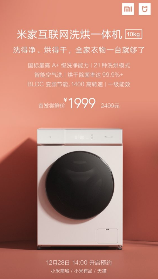 Novým produktom je práčka, ktorá obsahuje aj funkciu sušičky. Nový produkt sa predáva pod značkou Mijia. V novej práčke je možné vyprať až 10 kg bielizne, zatiaľ čo sušiť je možné 6kg bielizne. Nový produkt je vybavený špičkovým motorom s premenlivou frekvenciou BLDC, ktorá zabezpečuje presnosť, stabilitu, účinnosť, úsporu energie a hlavne tichý chod. Maximálna rýchlosť motora je 1400 otáčok za minútu. Taktiež je podpora rýchleho prania a sušenia s dobou len 1 hodinu. Možný je na výber až 21 režimov prania. Taktiež je možné ovládať novú pračku prostredníctvom aplikácie v smartfóne.