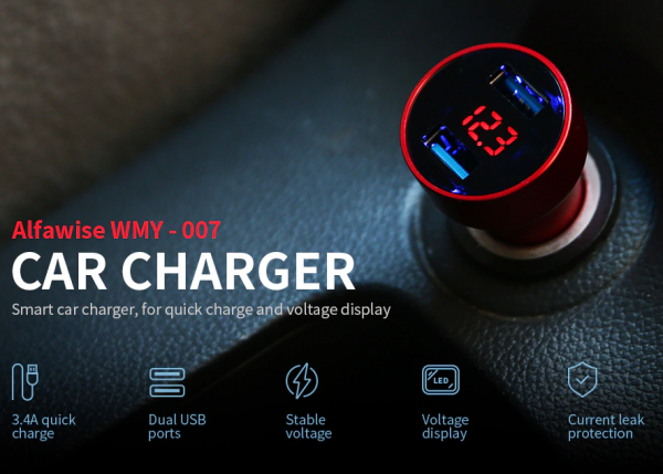 Zahraničný e-shop ponúka v zľave adaptérik do auta. Okrem dvoch portov pre nabíjanie taktiež adaptériku nechýba voltmeter, ktorý zobrazuje napätie batérie vozidla. Ak hodnota klesne pod 12.0 V batériu je potrebné vymeniť, prípadne dobiť. Adaptérik taktiež obsahuje hrot, ktorý slúži pre núdzové rozbitie skla.