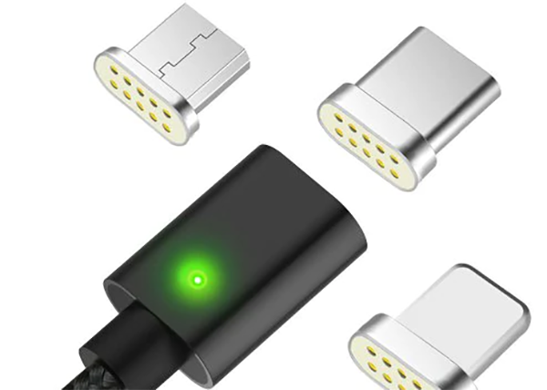 Až 2m magnetický káblik s nadstavcami USB C, Micro USB, Lightning